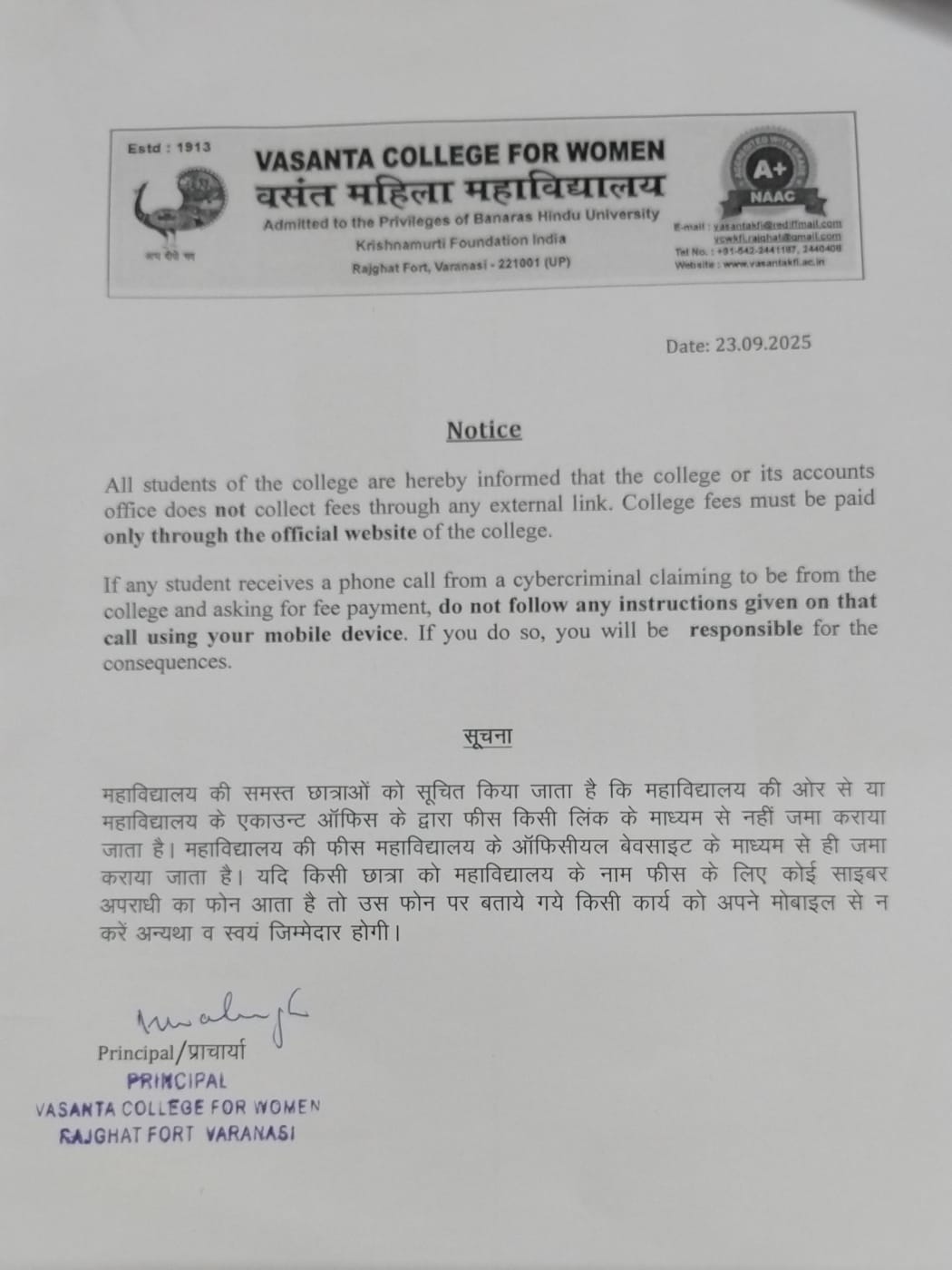 Malaviya Mission Teacher Training Centre, BHU in collaboration with Vasanta College for Women, Rajghat (admitted to the privileges of Banaras Hindu University) is organizing an Eight Day Online NEP Sensitization and Orientation Programme for Faculty Members and Research Scholars from 6th – 14th October, 2025. This program will also be considered for Career Advancement Scheme (CAS) purpose as per rules. Kindly encourage Faculty Members and Research Scholars of your College/ University/Institute to register for the programme. Application link is given below : https://mmc.ugc.ac.in/Login/Index Steps to register: Click on Register, fill in the necessary details. Now login to your account and click on Apply for training. Select Banaras Hindu University as the Centre and click on Search. Now click on participate to register for the training program scheduled from 6th – 14th October, 2025 at Banaras Hindu University. | 25 Sep 2025, 04:10 PM | |